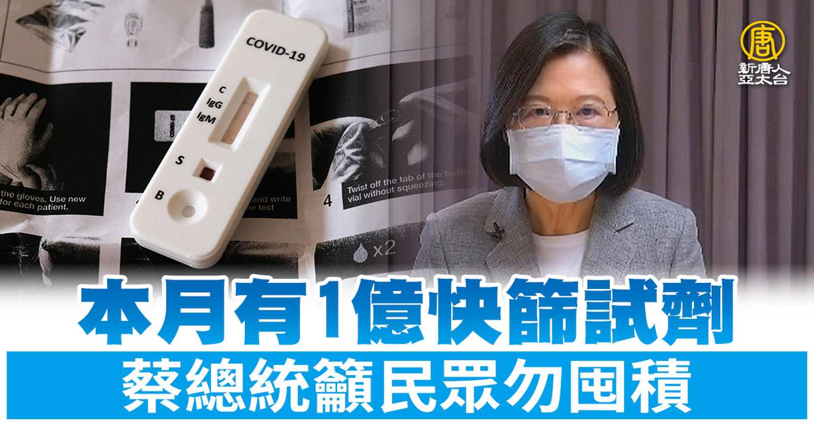 蔡總統:本月有1億快篩試劑 籲民眾勿囤積