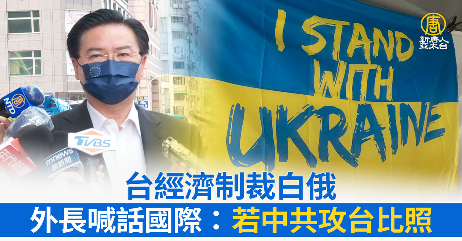 外交部昨天(6日)宣布,考量白俄羅斯協助俄羅斯侵略烏克蘭,並回應國際社會呼籲,因此對白俄羅斯進行經濟制裁,限制部分高科技產品輸往白俄羅斯。外交部長吳釗燮今天(7日)出席歐洲節活動,強調台灣與國際站在正義的一方。吳釗燮也提到,台灣未來如果遭到中共武力威脅或侵略,希望國際社會也能比照制裁這種侵略行為。 //asset1.ntdtv.com.tw/public/uploads/assets/2022/05/07/2022-05-07-627666f76d4ca.mp4 歐洲節|歐洲經貿辦|烏克蘭|高哲夫|游錫堃|吳釗燮|202205072022-05-07 21:36:56