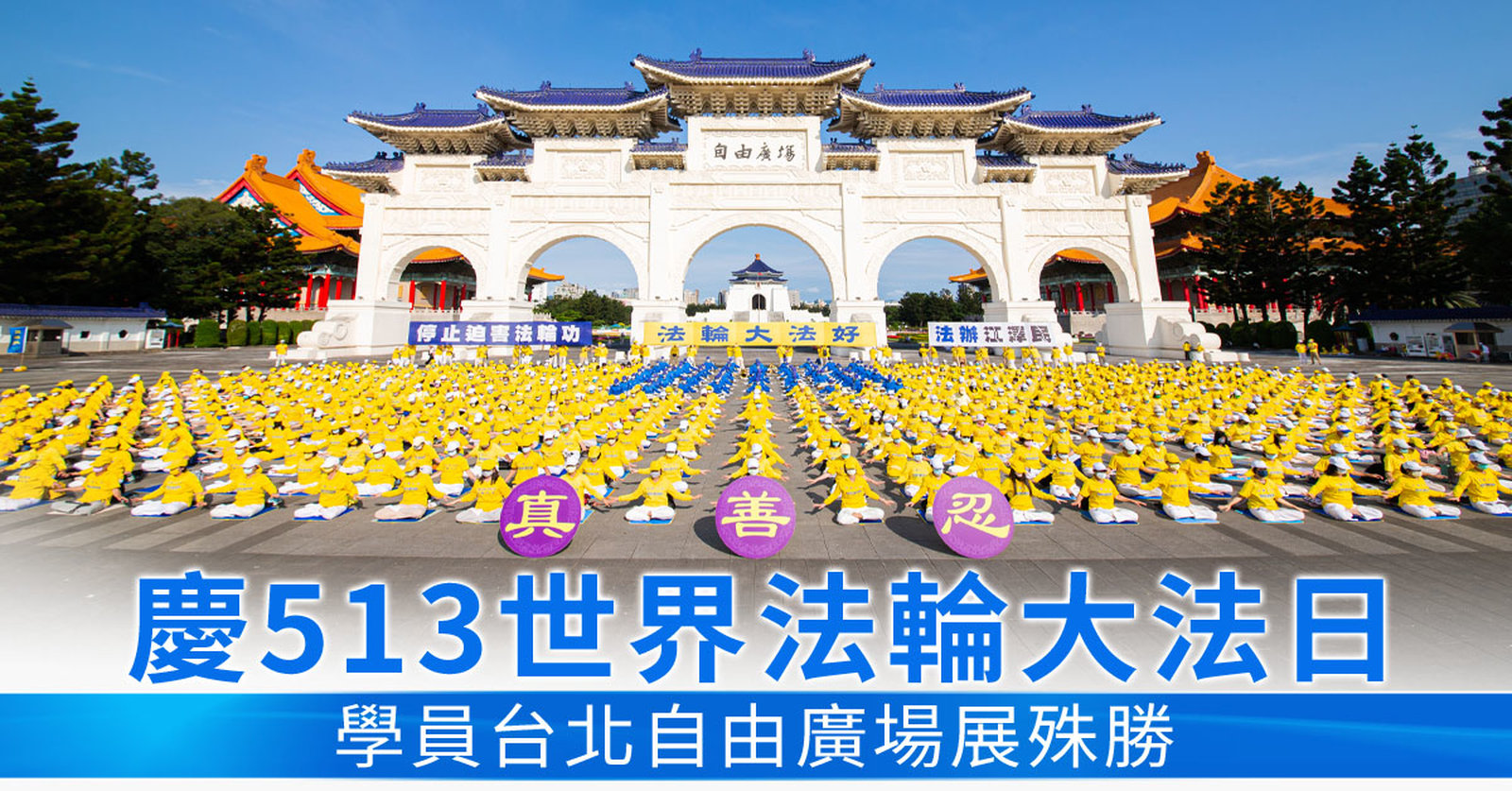 慶513世界法輪大法日 學員台北自由廣場展殊勝