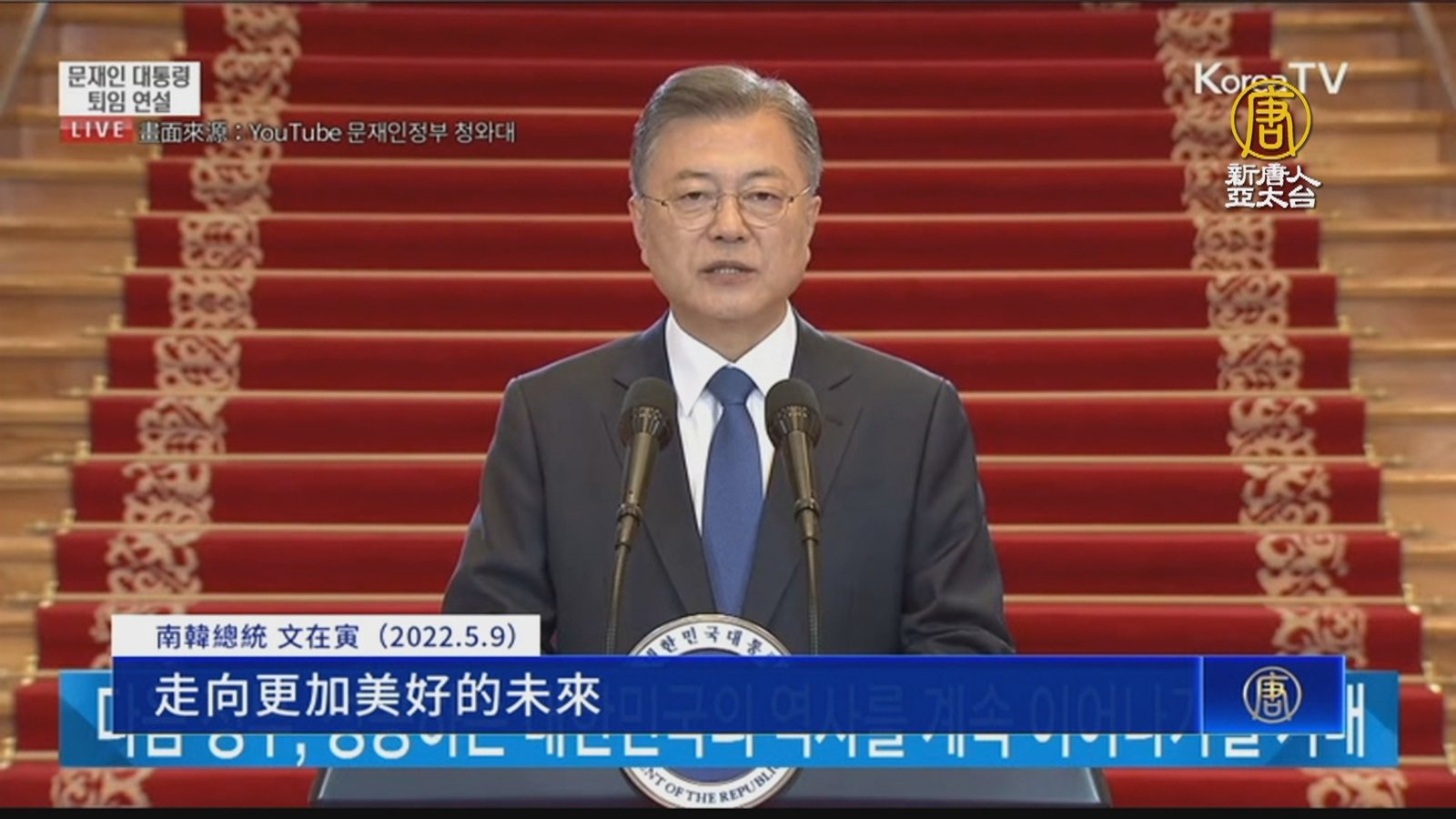 帶您看到東亞政局,南韓候任總統尹錫悅,即將在10日舉行就職典禮,9日這天現任總統文在寅也在青瓦臺會見外賓、發表了卸任演說,並在當地下午6點與夫人從青瓦臺正門離開,接受總統府職員的歡送,正式替五年的總統任期,畫下句點。 //asset1.ntdtv.com.tw/public/uploads/assets/2022/05/09/2022-05-09-62790a09bd803.mp4 南韓總統|青瓦臺|文在寅|尹錫悅|北韓|202205092022-05-09 21:38:00