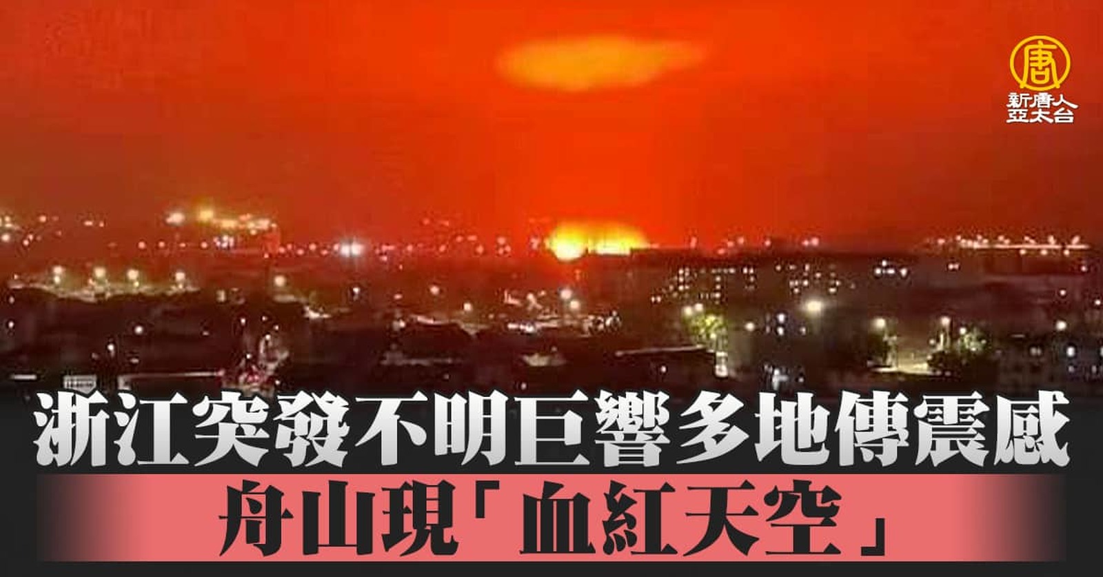 浙江突發不明巨響多地傳震感 舟山現「血紅天空」