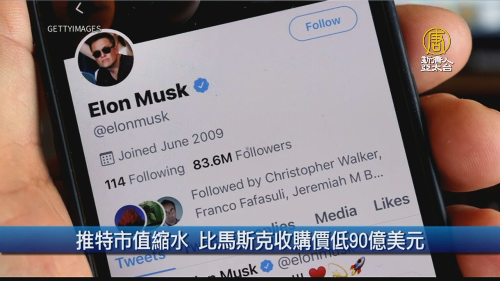 接著來看到,特斯拉創辦人馬斯克今天傍晚在推特表示,暫時停止推特的收購計畫,「因為要等待證實,垃圾帳號和虛假帳號,佔推特用戶不到5%的詳細資訊。」消息傳出後,推特股價暴跌17.7%,到了每股37.1元美元,是馬斯克宣布收購推特以來的最低價格。根據先前的收購合約,如果馬斯克確定取消收購推特,他就得支付推特10億美元的終止費。 //asset3.ntdtv.com.tw/public/uploads/assets/2022/05/13/2022-05-13-627e4e734ef32.mp4 馬斯克|推特|Twitter|202205132022-05-13 22:37:04