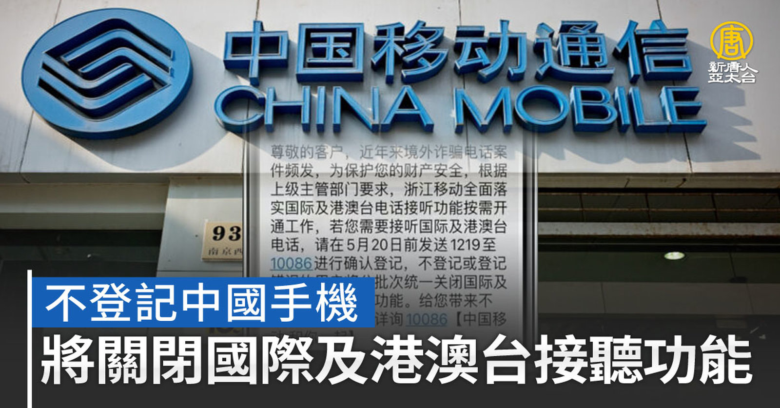 不登記中國手機 將關閉國際及港澳台接聽功能