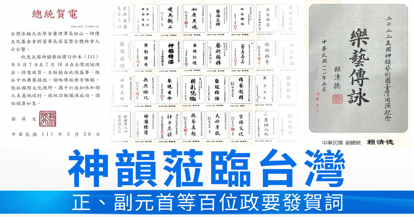 神韻蒞臨台灣 正、副元首等百位政要發賀詞