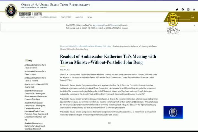 睽違兩年的APEC部長級實體會議這次在泰國舉行,會議前夕,台灣的行政院政務委員鄧振中與美國貿易代表戴琪進行了雙邊會晤,討論深化雙邊經濟關係的機會,並商定在未來幾週內再次會面,而這次會晤,正值美國總統拜登宣布成立印太經濟架構(IPEF)前夕,格外受到矚目。 //asset3.ntdtv.com.tw/public/uploads/assets/2022/05/21/2022-05-21-6288e85adcce2.mp4 美國|戴琪|鄧振中|印太經濟架構|IPEF|APEC|歐江安|蘇貞昌|202205212022-05-21 21:25:47