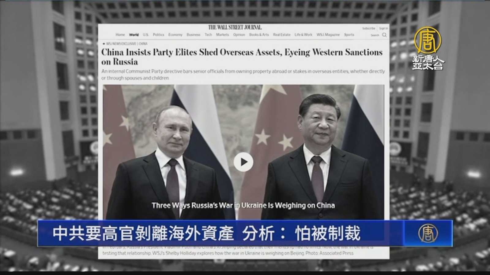 據《華爾街日報》消息,中共開始禁止官員擁有海外財產,評論認為,中共要麼是怕被制裁,要麼是準備割高官的韭菜。 //asset1.ntdtv.com.tw/public/uploads/assets/2022/05/21/2022-05-21-6288e10e5a4dd.mp4 中共|海外資產|制裁|賴建平|秦鵬|202205212022-05-23 06:24:05