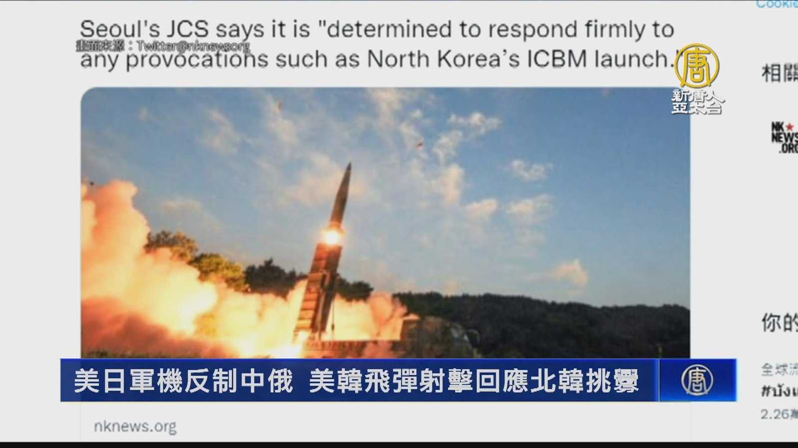 美日軍機反制中俄 美韓飛彈射擊回應北韓挑釁