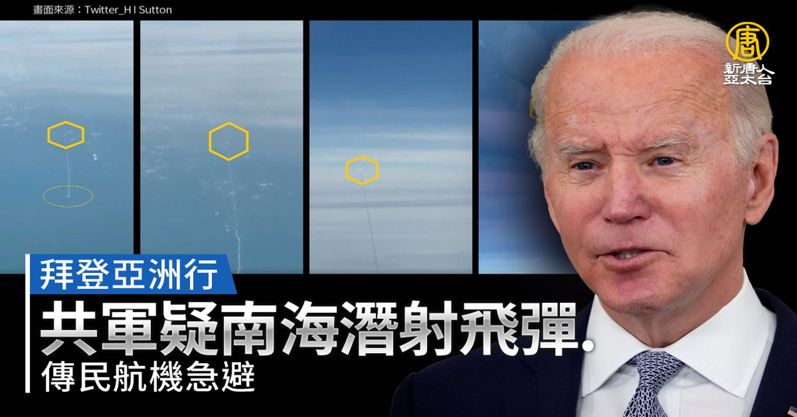 拜登亞洲行 共軍疑南海潛射飛彈.傳民航機急避