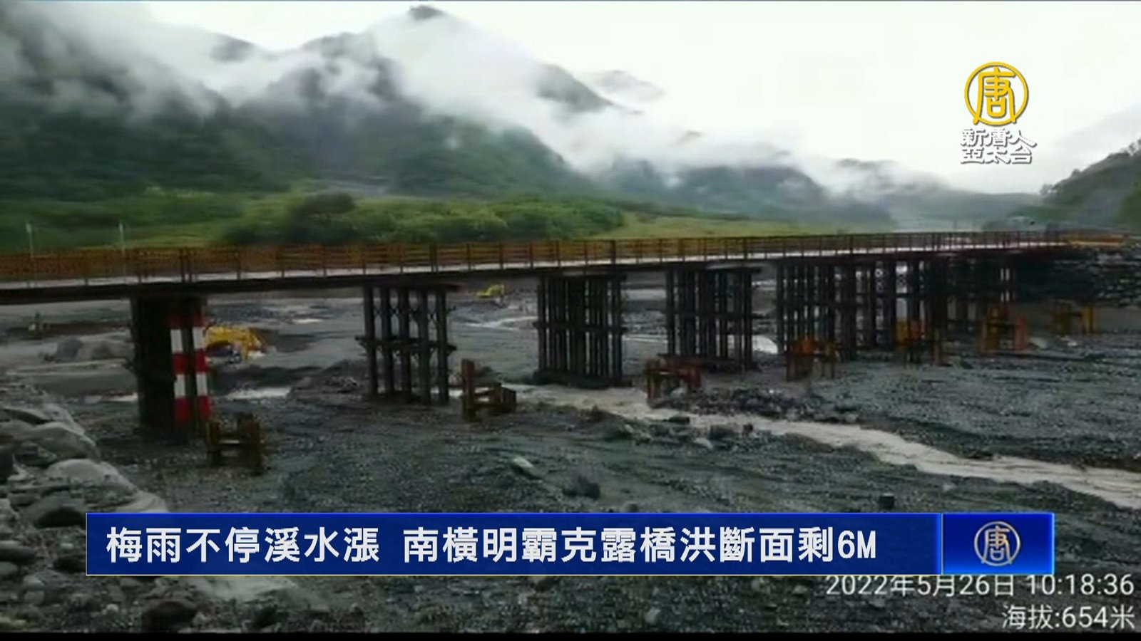 歡迎回來,近日台灣因為梅雨鋒面籠罩,連日雨下不停。今天傳出零星災情,包括宜蘭頭城,因為土石流沖下路面擋住車道、新北風櫃斗步道也遭水淹,漫成小河。南部因為山區降下大雨,溪水暴漲,玉穗溪、荖濃溪匯流口河床抬升超過3公尺,使南橫明霸克露橋被沖垮後,所架設的鋼便橋,原有10公尺高的「通洪斷面」,只剩大概六公尺。 //asset3.ntdtv.com.tw/public/uploads/assets/2022/05/26/2022-05-26-628f7bdf22eba.mp4 梅雨|豪雨|下雨|明霸克露橋|土石流|南橫|202205262022-05-26 22:08:17
