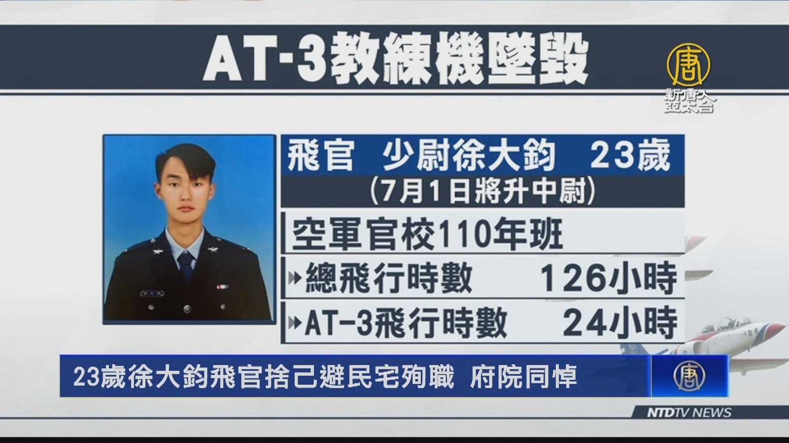 新聞首先來看到,空軍1架AT-3教練機,今天(31日)早上在高雄岡山基地執行飛行訓練任務,起飛三分鐘後失聯,岡山消防局接獲通報,在距離機場一段距離的空地上,發現飛機殘骸,駕駛少尉飛官徐大鈞被尋獲時已罹難。軍方表示,對人員殉職相當哀痛、不捨,將依照總統指示,全力協助家屬處理後續事宜,並釐清事故原因。 //asset2.ntdtv.com.tw/public/uploads/assets/2022/05/31/2022-05-31-629604a2beb95.mp4 空軍|失事|空軍官校|AT-3|跳傘|徐大鈞|罹難|202205312022-05-31 21:42:39