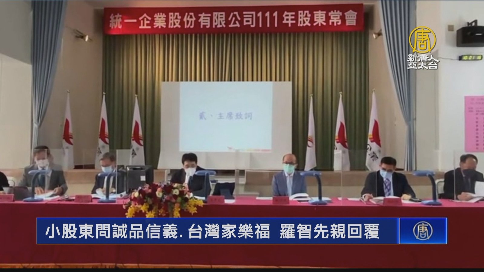 食品大廠統一今天(31日)舉行股東會,小股東關心台灣家樂福出售案進度,以及誠品信義的租約問題。對此,董事長羅智先都親自回應。 //asset1.ntdtv.com.tw/public/uploads/assets/2022/05/31/2022-05-31-62961050e423e.mp4 統一|羅智先|誠品|家樂福|吳旻潔|202205312022-05-31 21:50:46