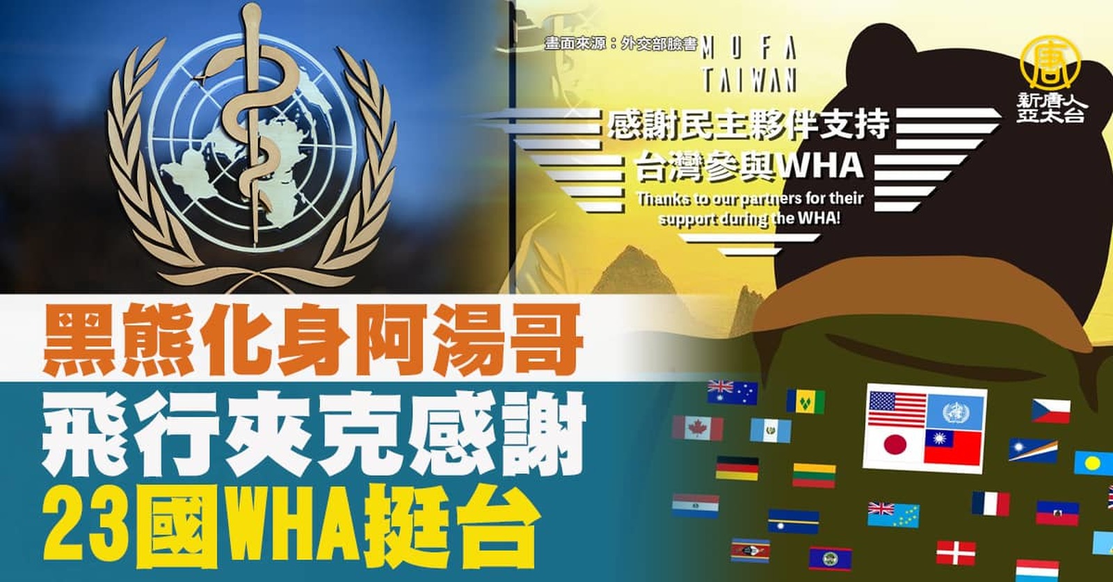 黑熊化身阿湯哥 飛行夾克感謝23國WHA挺台