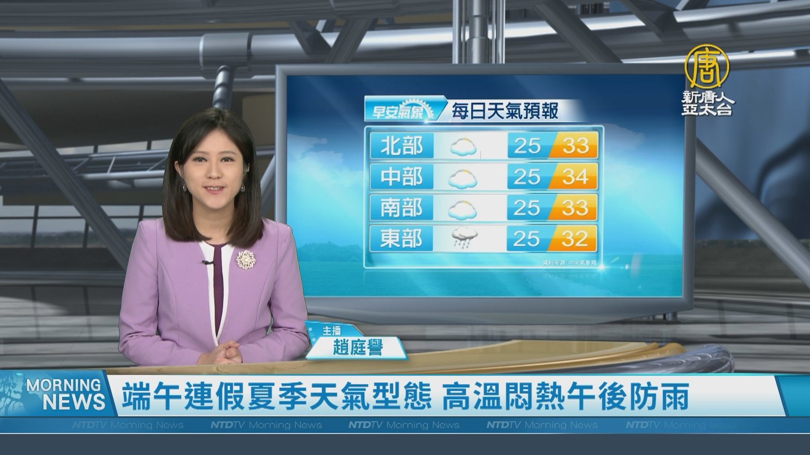明天(6月3日)就是端午節,氣象局表示,連假期間各地天氣悶熱,高溫都在30度以上,河谷、盆地可能飆上36度,北部、東北部和各地山區,要留意午後雷陣雨,週五、週六(6月4日)西南風帶來水氣,可能出現局部雷雨。下週一(6月6日)又有鋒面報到,天氣將更不穩定。 //asset3.ntdtv.com.tw/public/uploads/assets/2022/06/02/2022-06-02-6298be069c6fc.mp4 端午節|天氣|連假|高溫|午後雷陣雨|鋒面|天氣預報|202206022022-06-02 22:03:59