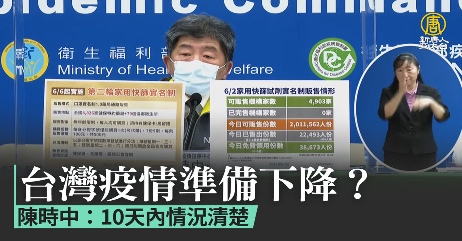 台灣邁向與病毒共存後,確診數攀升,是否已達高峰疫情準備降溫,今天(2日)指揮中心指揮官陳時中,也在記者會做出回應。 //asset1.ntdtv.com.tw/public/uploads/assets/2022/06/02/2022-06-02-6298aae10a480.mp4 高原期|疫情|端午節|兒童疫苗|口罩|202206022022-06-02 22:25:30
