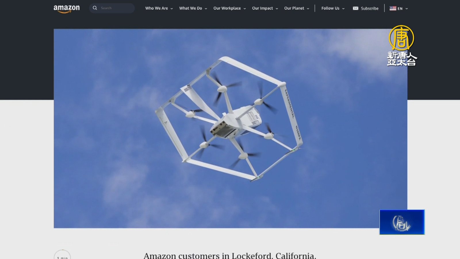 亞馬遜啟用無人機送貨 北加消費者搶先體驗