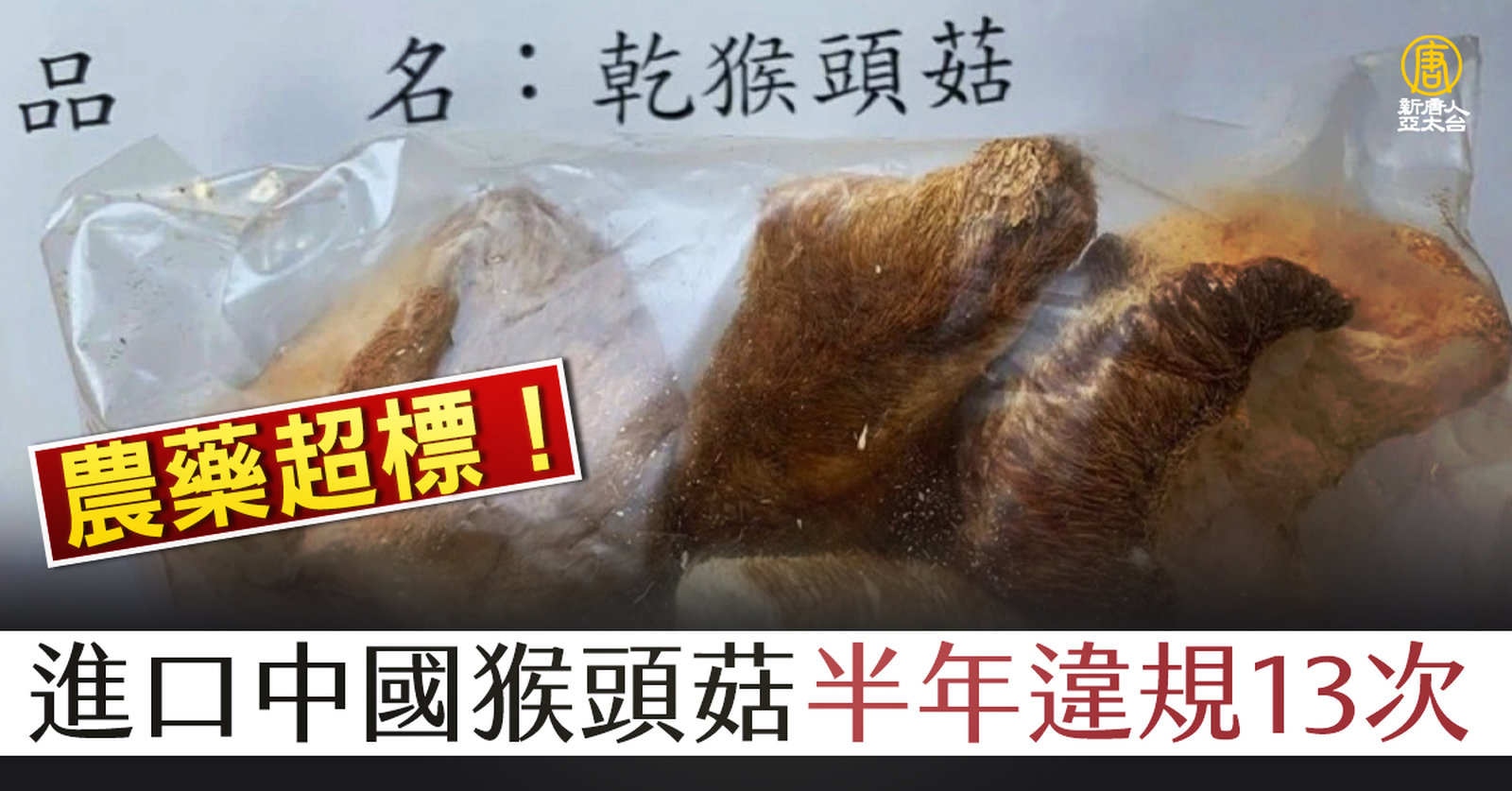 接著關注食安議題。中國大陸進口的乾燥猴頭菇,這半年來,經邊境稽查抓到13次農藥超標。67批進口中就有13批違規,不合格率約19.4%,超過標準規定的10%不合格率。依規定,食藥署將要求出口國說明屢次不合格的原因,並提交說明報告,否則將禁止進口該品項。 //asset1.ntdtv.com.tw/public/uploads/assets/2022/06/14/2022-06-14-62a888b410cc1.mp4 中國|猴頭菇|農藥超標|食藥署|202206142022-06-14 21:24:32
