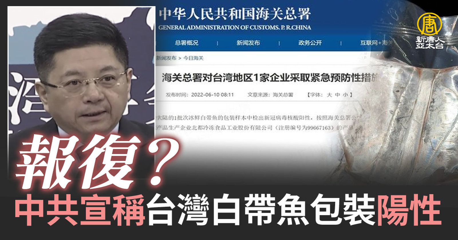 新聞首先來看到,中共禁止進口台灣石斑魚後,國台辦發言人馬曉光今天(15日)又宣稱,從台灣輸入的 冰鮮及冷凍水產品 的外包裝樣本中,檢測出新冠病毒核酸陽性,依規定暫停輸入一週。不過,不只指揮中心表示,不會因為包裝驗出病毒而染疫,就連中國學者也曾說,因此染疫的概率比空難還低。台灣國會議員鄭運鵬指出,這是中共在台灣大選前的的典型手段,以商或以農逼政,呼籲國人提防認知作戰。 //asset3.ntdtv.com.tw/public/uploads/assets/2022/06/15/2022-06-15-62a9cbf3cc0a9.mp4 台灣水產品外包裝|國台辦|台灣石斑魚|中共|陽性|中共病毒|外包裝|202206152022-06-15 22:16:29