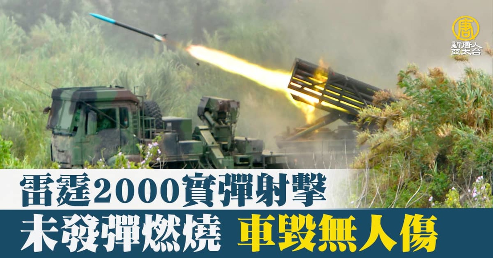 再來看到,陸軍58砲指部一輛雷霆2000火箭發射車,上午9點多,在屏東九鵬基地,進行陸軍年度雷霆操演實彈射擊時,突然發生爆炸事故,導致整輛車被炸毀引發大火,所幸發射時,人員都必須遠距操控,未造成傷亡,目前軍方已停止演訓,調查發生原因中。 //asset1.ntdtv.com.tw/public/uploads/assets/2022/06/20/2022-06-20-62b062bb1e8da.mp4 雷霆2000火箭發射車|實彈射擊|爆炸|屏東|九鵬基地|202206202022-06-20 21:51:15
