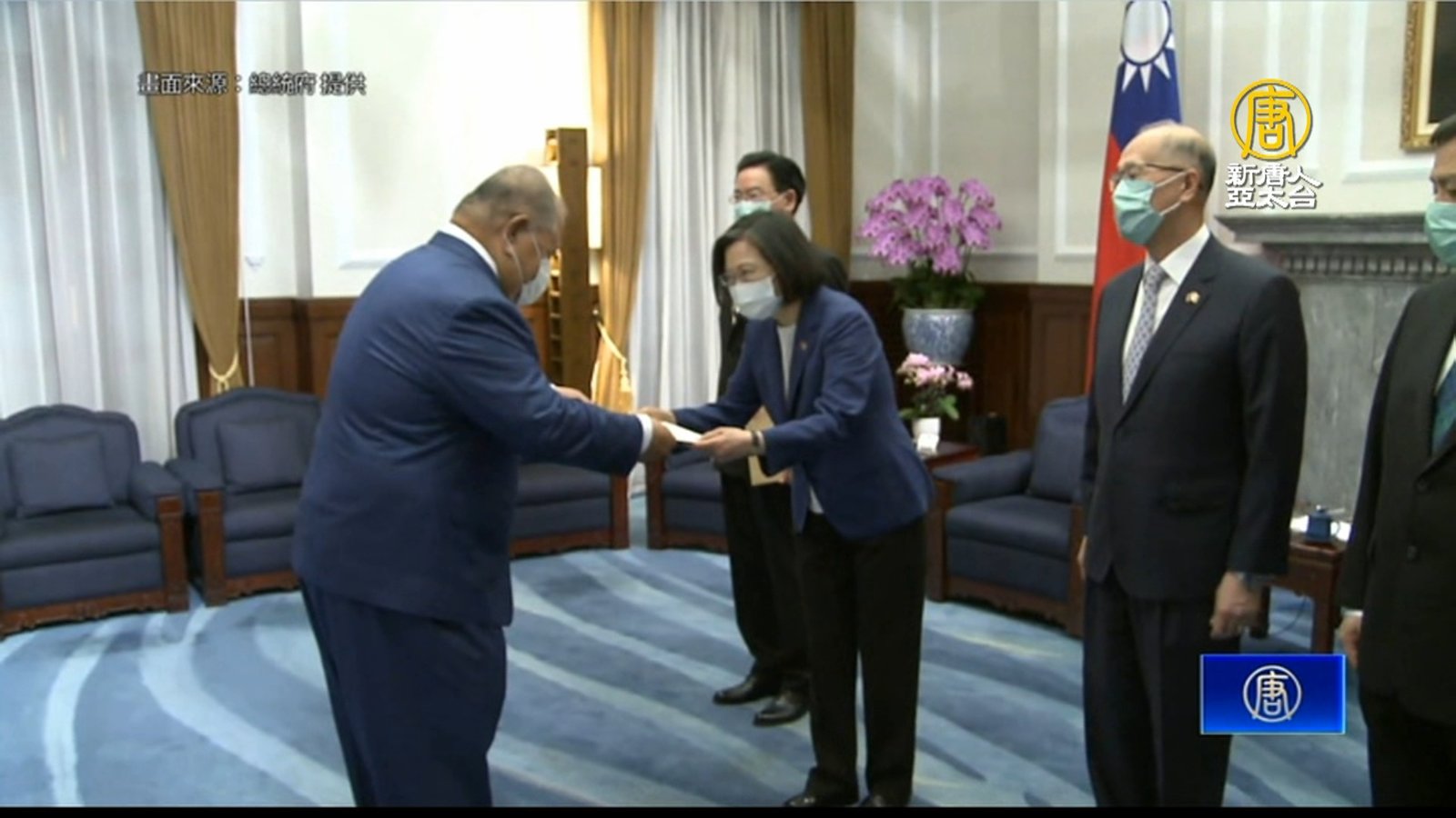 南太平洋友邦,吐瓦魯前總理潘恩紐(Bikenibeu Paeniu),作為新任吐瓦魯駐中華民國大使,今天上午覲見總統蔡英文,遞交到任國書,並表示吐瓦魯會給予台灣最高度的信任和忠誠,也會幫助台灣在太平洋區域爭取更多盟友支持。 //asset3.ntdtv.com.tw/public/uploads/assets/2022/06/20/2022-06-20-62b064167182a.mp4 吐瓦魯|潘恩紐|蔡英文|駐台特命全權大使|202206202022-06-20 21:54:35