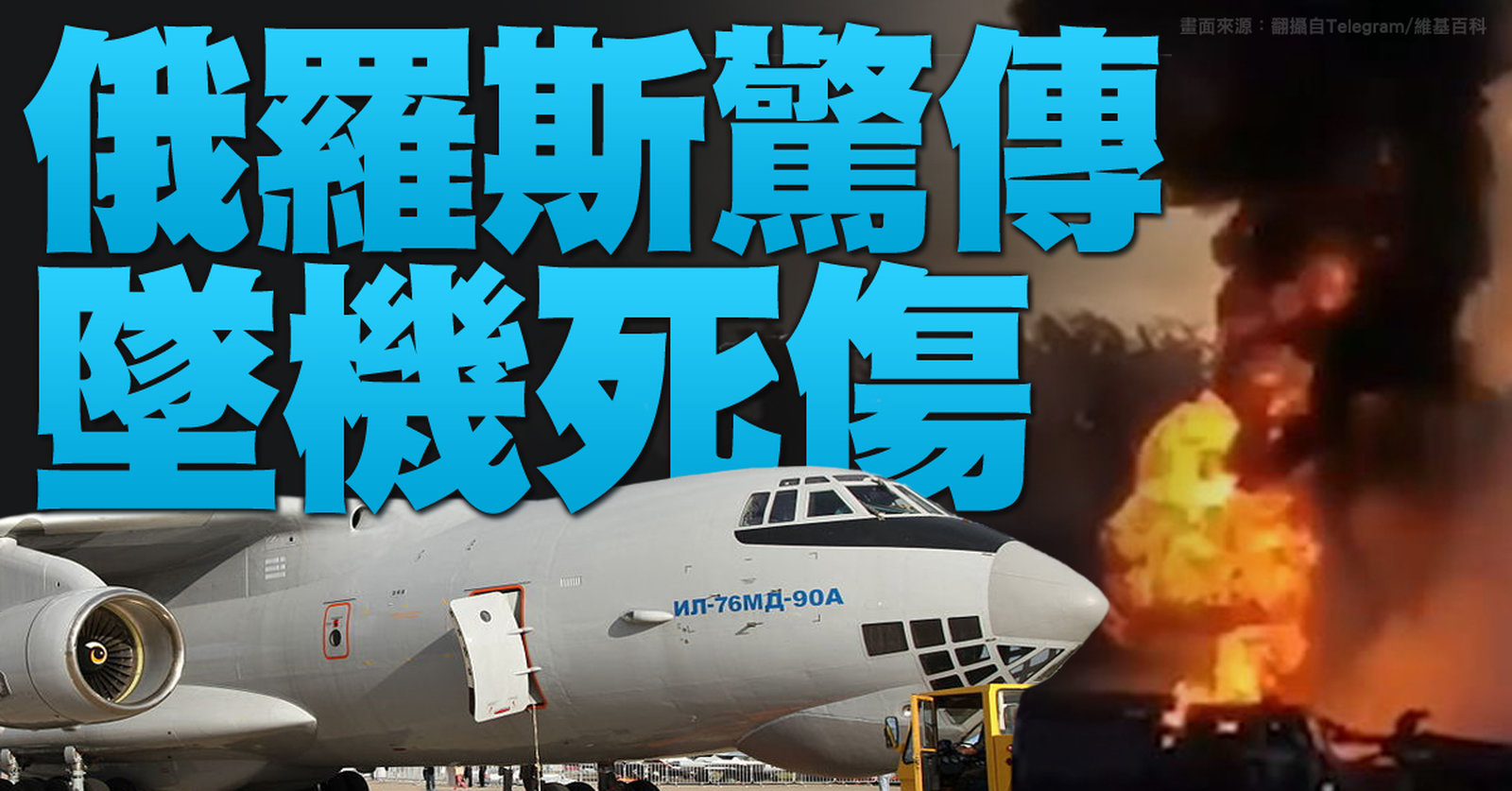 俄烏戰持續之際,俄羅斯軍方一架運輸機,今天清晨在俄國西部梁贊市附近墜毀,當地政府表示,至少造成4人喪命,5人受傷。俄國媒體塔斯社引述消息人士報導,墜毀的是伊留申Il-76型運輸機,機上有9人,4人不幸身亡,5人受傷住院治療。俄羅斯國防部告訴俄新社,當時在飛行訓練,因發動機故障,緊急降落時不慎墜毀起火。 //asset2.ntdtv.com.tw/public/uploads/assets/2022/06/24/2022-06-24-62b5b364058ad.mp4 俄羅斯|墜機|軍用運輸機|伊留申Il-76|梁贊市|202206242022-06-24 22:03:25