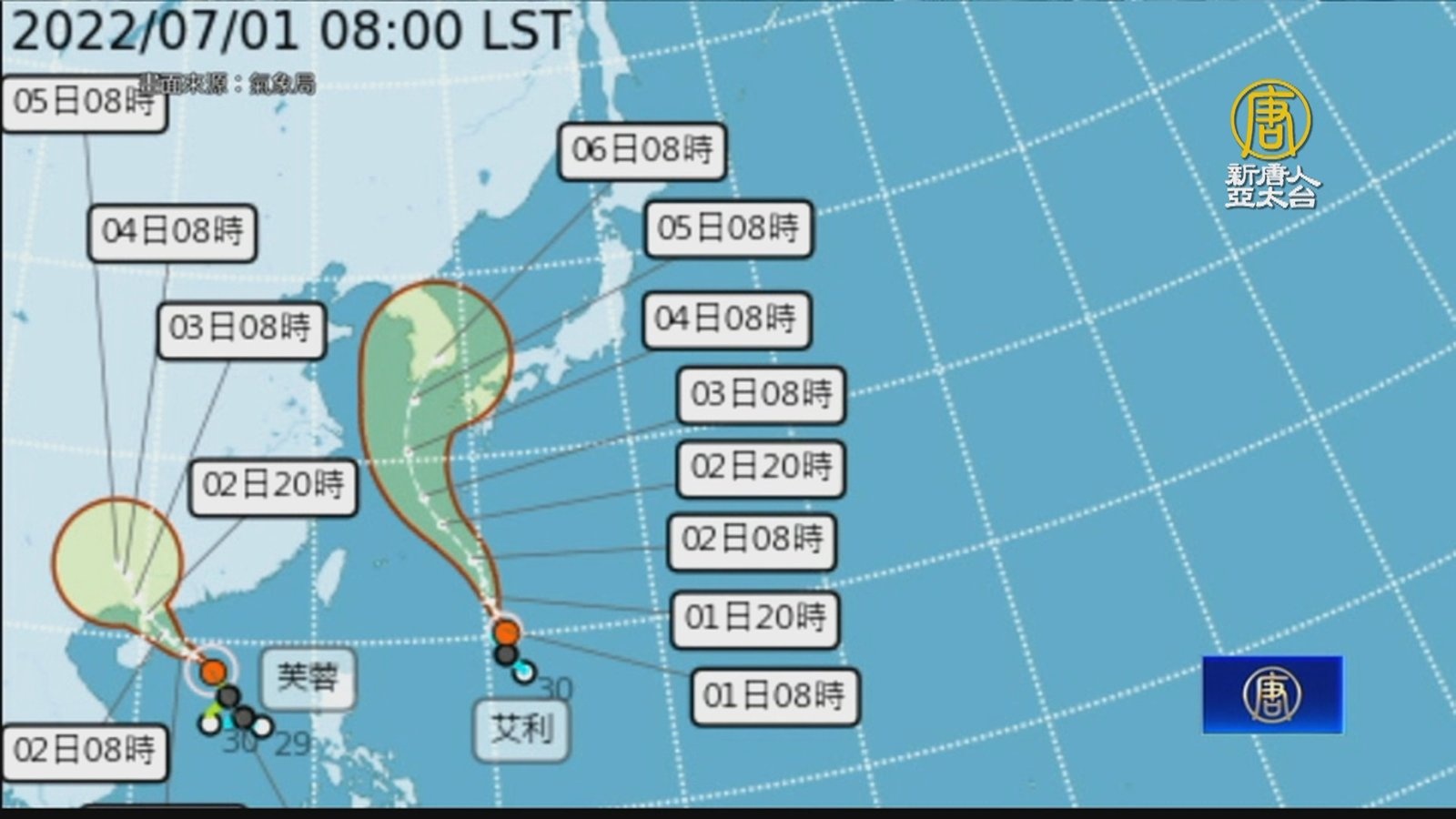 關心天氣,芙蓉颱風及艾利颱風接力生成,兩系統一左、一右閃過台灣,雖然對台灣沒有直接影響,但外圍水氣在未來1週,將帶來南部和東南部較大雨勢。而今天正逢香港七一移交週年,香港懸掛3號風球,是25年來第三次在七一遇上颱風,而在習近平離港後,香港天文台在今晚七點,改發8號風球。 //asset1.ntdtv.com.tw/public/uploads/assets/2022/07/01/2022-07-01-62bee69816130.mp4 颱風|艾利|芙蓉|雙颱|大雨|天氣預報|202207012022-07-01 22:06:57