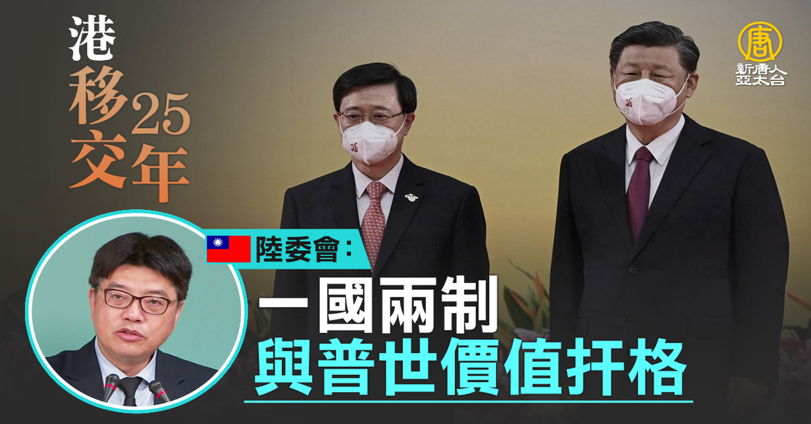 對於香港移交25週年,台灣陸委會今天(1日)表示,香港自由民主快速流失,人權法治倒退緊縮,反映中共在香港實施「一國兩制」,本質與普世價值相扞格。行政院長蘇貞昌說,中共過去答應50年不變,才經過25年,香港民主自由蕩然無存,中共所謂的一國兩制根本不堪檢驗。 //asset2.ntdtv.com.tw/public/uploads/assets/2022/07/01/2022-07-01-62bee44f0049d.mp4 蘇貞昌|陸委會|黃珊珊|朱立倫|一國兩制|香港|中共|習近平|七一|港版國安法|202207012022-07-01 21:55:58