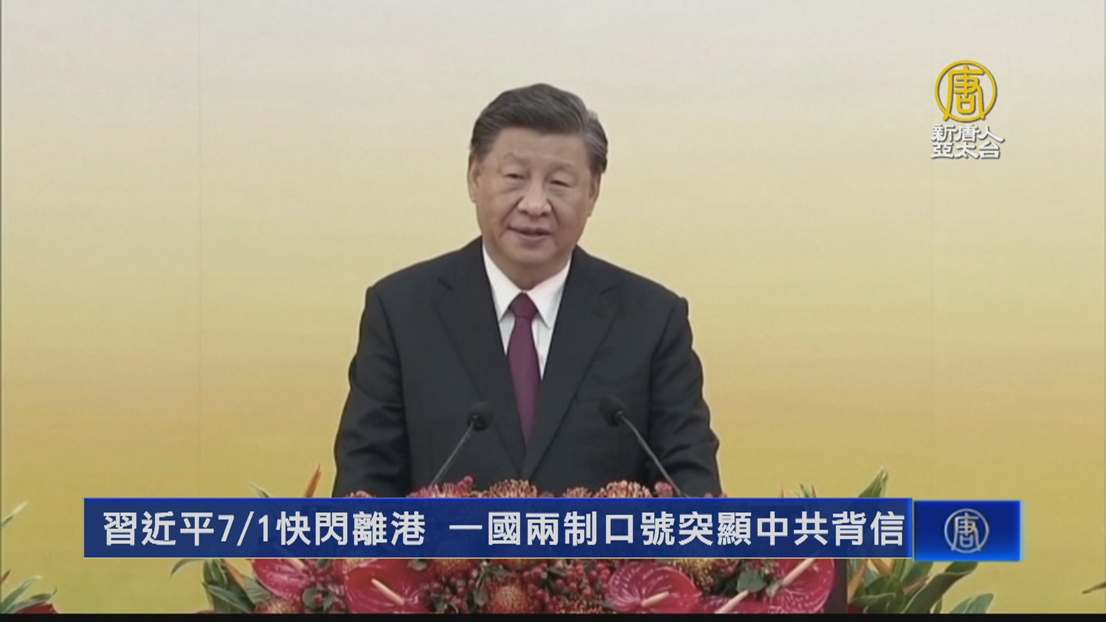 習近平七一快閃離港 一國兩制口號突顯中共背信