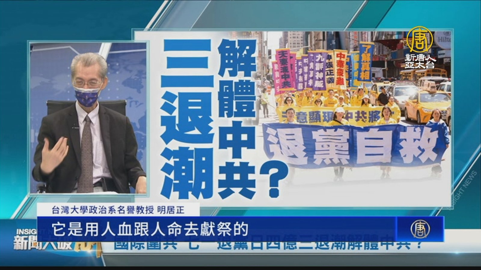 七月一日中共建黨日,也是全球退黨日,7月退黨月,退出中國共產黨相關組織的退黨潮、三退潮,可能在7月下旬將累計突破4億人。學者明居正(1日)受訪表示,三退運動對中國與世界影響深遠,他提醒華人,務必分清中共與中國。 //asset2.ntdtv.com.tw/public/uploads/assets/2022/07/01/2022-07-01-62beec3681290.mp4 三退|退黨|七一退黨日|中共|共青團|少先隊|202207012022-07-01 22:14:35