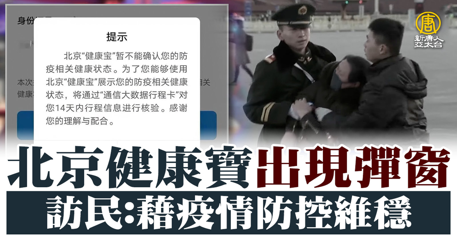 北京健康寶出現彈窗 訪民:藉疫情防控維穩