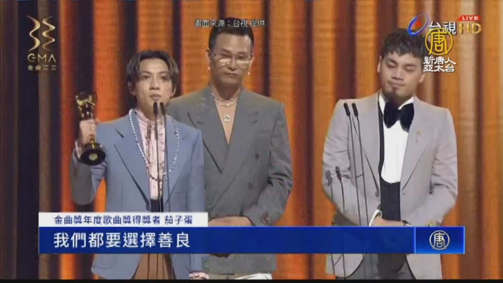 第33屆金曲獎今天高雄登場,典禮到現在已經陸續開出7個獎項,首先開出大家都矚目的年度歌曲獎,在8首歌入圍當中,由茄子蛋的《愛情你比我想的閣較偉大》拿下獎項,同時讓台下更驚喜的,是藝人小S姐夫具俊曄登場成為頒獎嘉賓之一。 //asset2.ntdtv.com.tw/public/uploads/assets/2022/07/02/2022-07-02-62c0508839441.mp4 金曲獎|金曲33|茄子蛋|年度歌曲獎|具俊曄|202207022022-07-02 22:23:11