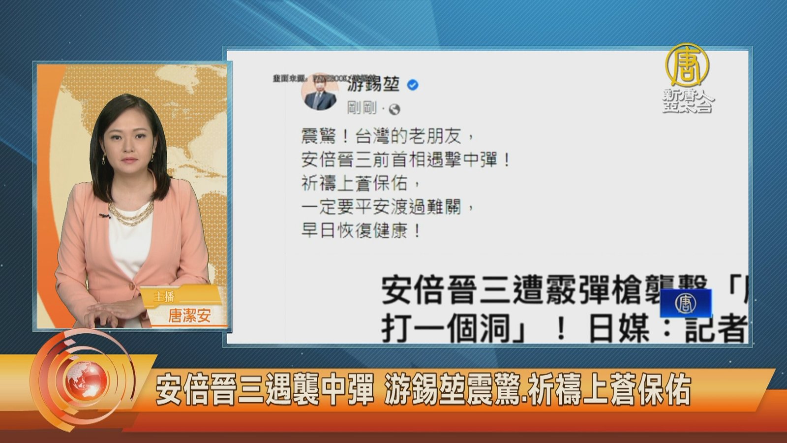 頭條新聞,日本參議院大選前夕,前首相安倍晉三在街頭助選,遭歹徒從背後槍擊暗殺、子彈傷到心臟,經送醫不治身亡。安倍近期才承諾7月底訪問台灣,台灣朝野民間哀悼,失去堅定的好朋友。首相岸田文雄表示,選舉是民主的根基,在選戰期間發生卑劣蠻行,他對此做出最大譴責。 //asset2.ntdtv.com.tw/public/uploads/assets/2022/07/08/2022-07-08-62c81d997b5c4.mp4 安倍遇刺|日本|安倍晉三|槍擊|搶救不治|岸田文雄|岸信夫|202207082022-07-08 22:48:18