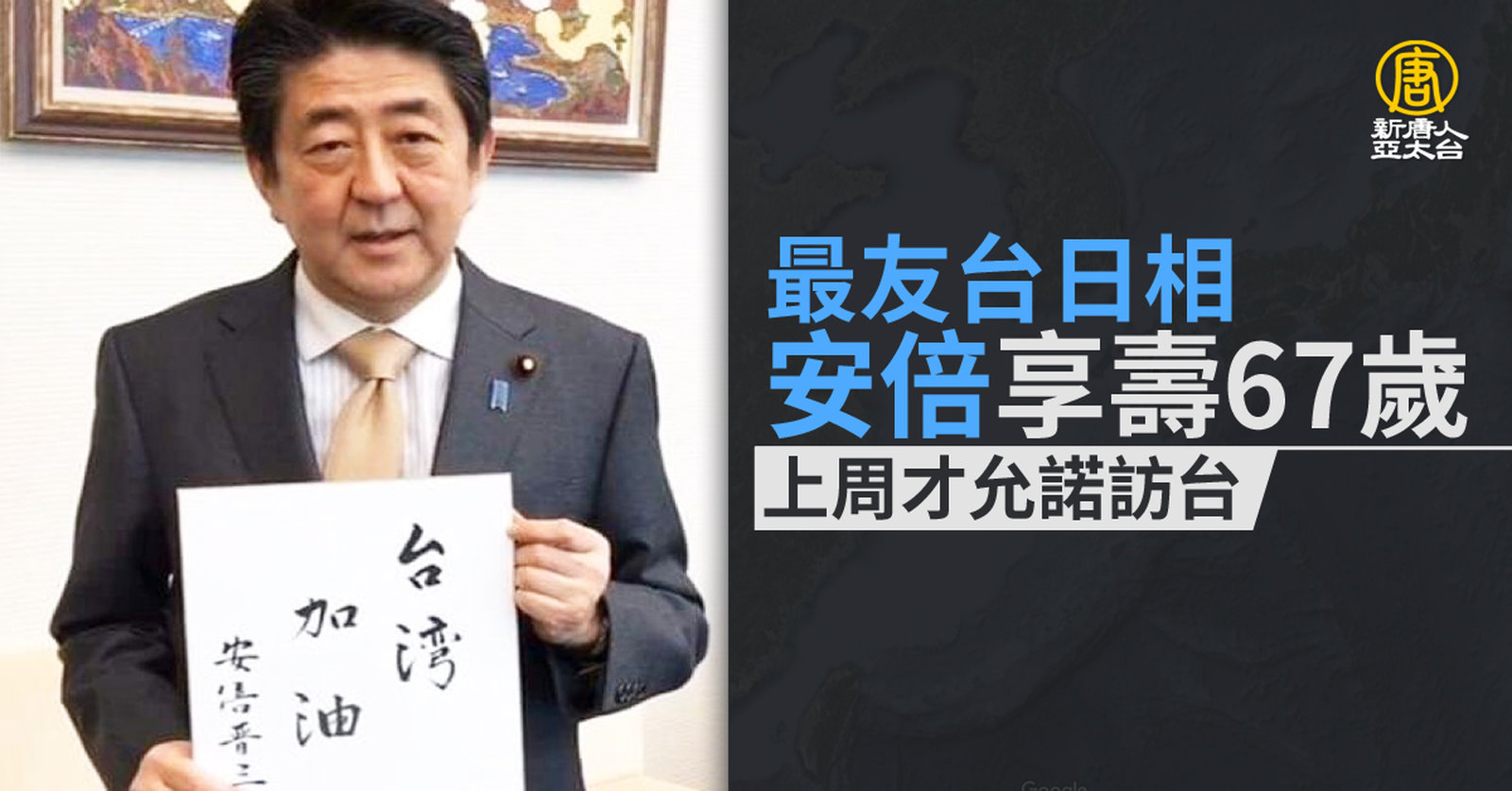 「最友台日相」安倍享壽67歲 上周才允諾訪台