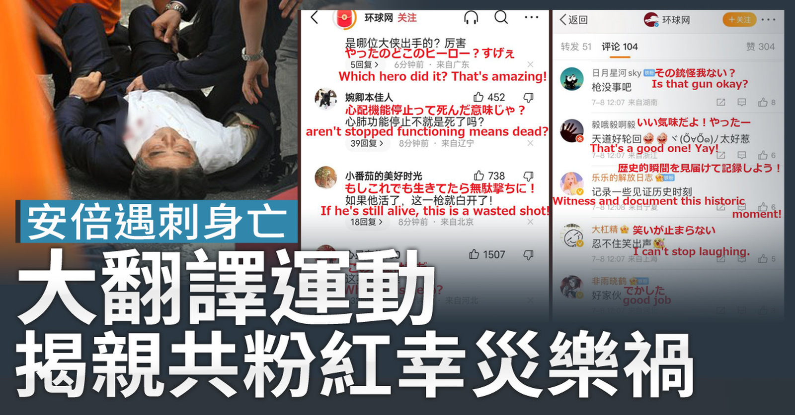 安倍遇刺身亡 大翻譯運動揭親共粉紅幸災樂禍
