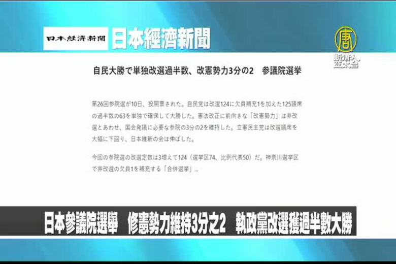 日本參議院選舉 自民黨大勝 修憲勢力逾三分之二