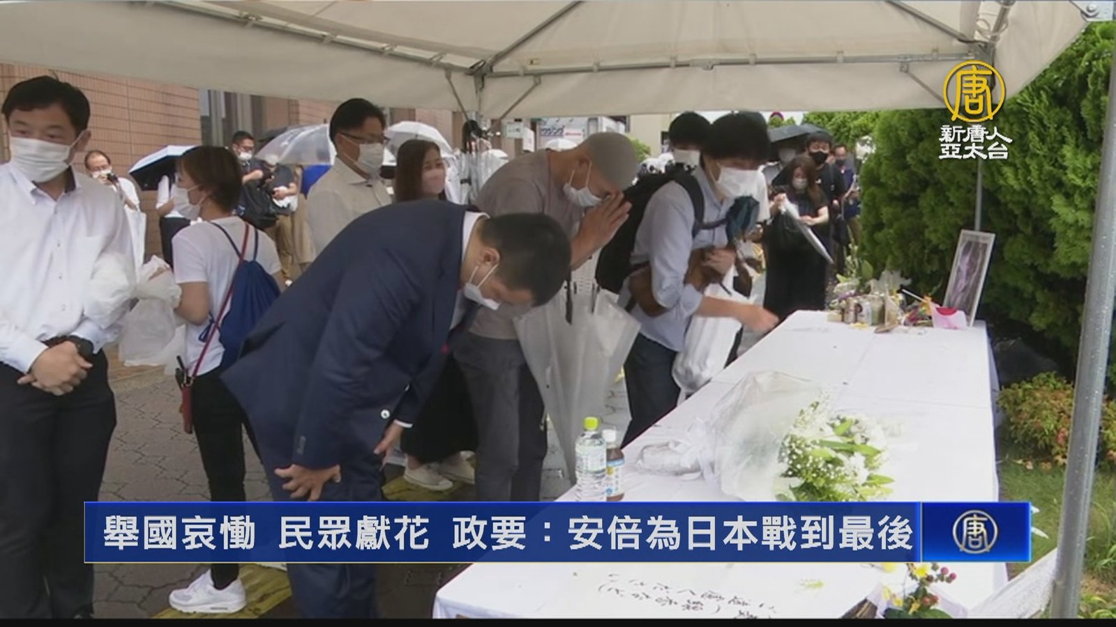 新聞一開始,帶您持續關心,日本前首相安倍晉三,8日遭槍擊身亡,今天(11日)日本時間晚間6點,台灣時間下午5點,將在東京港區增上寺舉辦守靈儀式,首相岸田將帶領內閣幕僚參加。載有安倍遺體與妻子安倍昭惠的靈車,已經在下午三點左右抵達增上寺。此外,日本政府11日也決定,追贈遇刺身亡的前首相安倍晉三最高等勳章「大勳位菊花章頸飾」。是日本二戰後國內獲得這個殊榮的第4人。 //asset3.ntdtv.com.tw/public/uploads/assets/2022/07/11/2022-07-11-62cc1172de3b2.mp4 安倍遇刺|岸田文雄|增上寺|安倍昭惠|202207112022-07-11 20:32:14