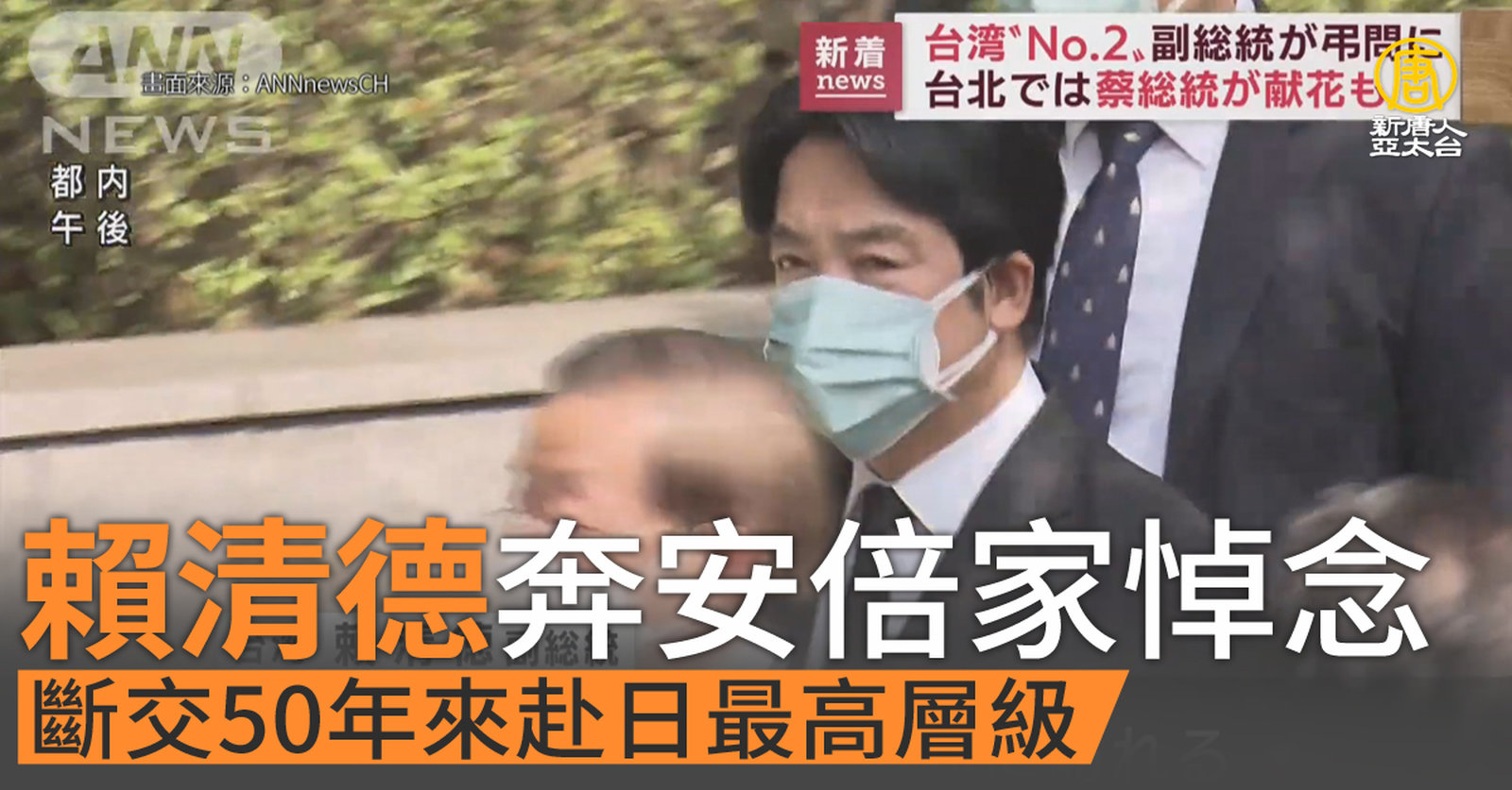 賴清德奔安倍家悼念 斷交50年來赴日最高層級