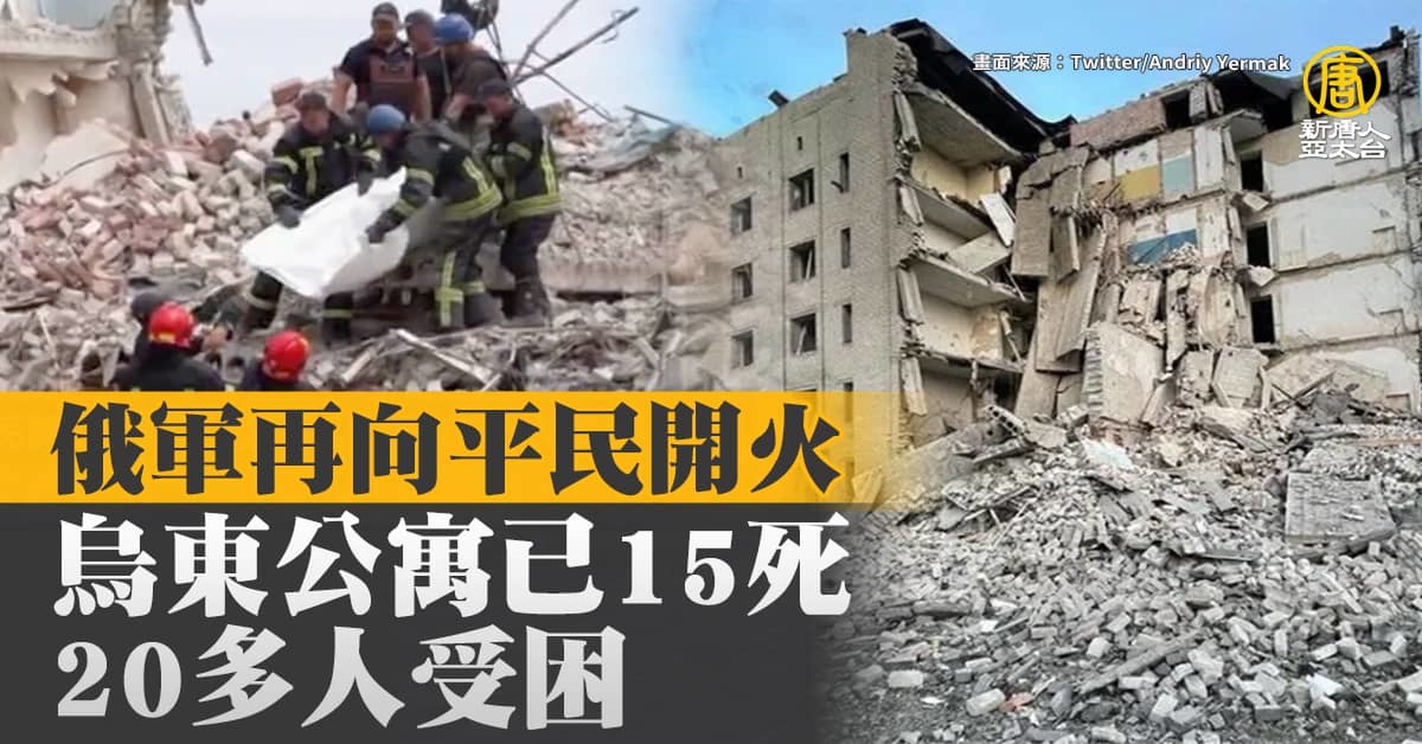 俄軍再向平民開火 烏東公寓已15死20多人受困