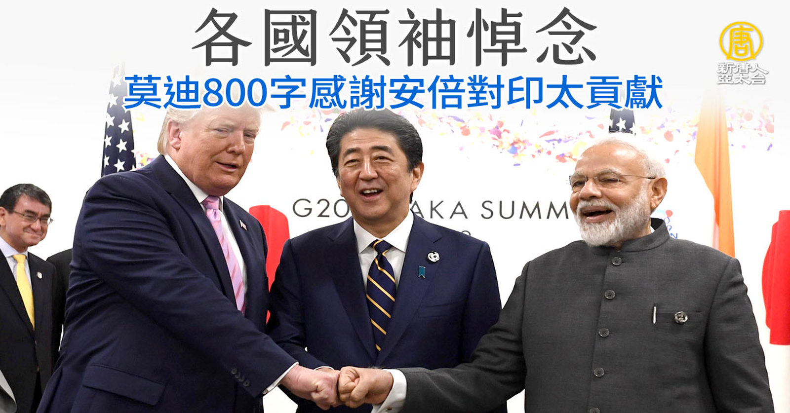 各國領袖悼念 莫迪800字感謝安倍對印太貢獻