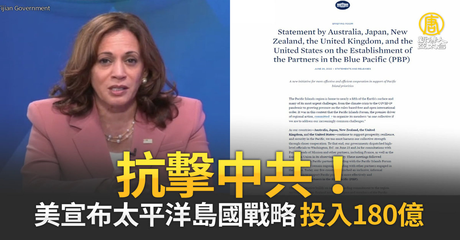 接著來看到,美中角力的場域現在也延伸到了太平洋島國。今年3月,中共先是與索羅門群島與簽訂安全協議。之後,中共外長王毅又在5月走訪多個南太島國,試圖與南太10國達成協議,但沒有成功。這也讓昨天登場的太平洋島國論壇備受關注。今天,美國副總統賀錦麗透過視訊出席論壇,宣布美國將重新回到太平洋島國,並將提供這個地區6億美元的經濟援助。 //asset2.ntdtv.com.tw/public/uploads/assets/2022/07/13/2022-07-13-62ceb6858a22f.mp4 太平洋島國論壇|美國|賀錦麗|中共|中共武官|202207132022-07-13 22:26:22