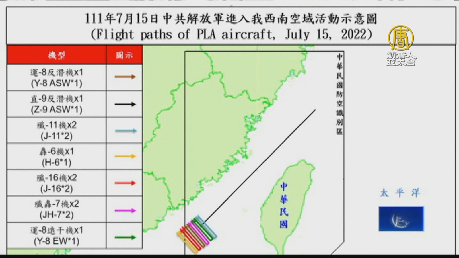 中共軍機在8日飛越台灣海峽中線後,今天又來了十架次,闖入西南防空識別區。台灣空軍今天(15日)晚間再發布共機動態,10架共機侵擾台灣西南防空識別區(ADIZ),包括運八反潛機、直九直升機、殲11、轟六等。空軍派遣空中巡邏兵力應對、廣播驅離,以及防空飛彈追蹤監控。 //asset3.ntdtv.com.tw/public/uploads/assets/2022/07/15/2022-07-15-62d15abc9e9f1.mp4 共機擾台|共機|台海中線|202207152022-07-15 22:08:02