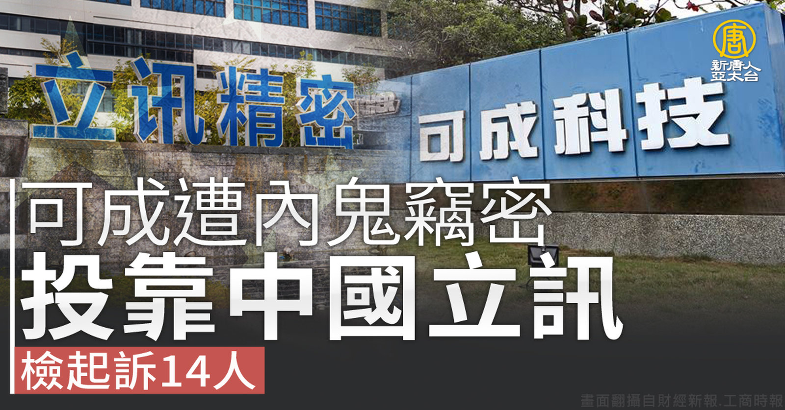 台商可成科技公司,是生產iPhone與iPad等產品金屬機殼的大廠,爆出營業秘密遭內鬼偷竊給中企。在中國大陸管理研發與技術的副總經理鄭家福,涉嫌替競爭對手、中國立訊公司,偷竊可成的營業秘密,還以高額安家費金錢挖腳,有13名員工離職後帶槍投靠立訊,造成可成公司鉅額損害。台灣檢方表示,歷經1年6個月偵查與蒐證、發動4次搜索,全案在今天7月15日偵查終結,起訴14人,罪嫌包括違反特別背信罪及營業秘密法等。可成傍晚聲明,將嚴加追究法律責任。 //asset2.ntdtv.com.tw/public/uploads/assets/2022/07/15/2022-07-15-62d166743b592.mp4 可成科技|中國立訊|竊密|內鬼|iPhone|iPad|金屬機殼|鄭家福|202207152022-07-15 22:08:20