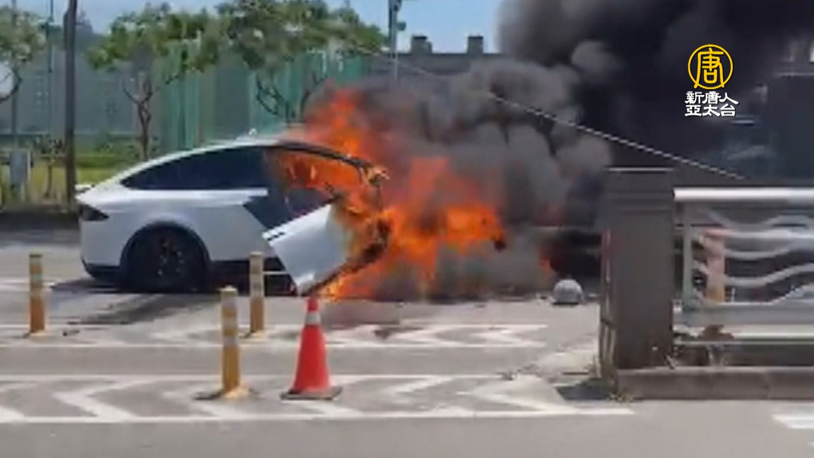 林志穎開車自撞分隔島意外瞬間,又有最新畫面曝光。監視器拍下車子正面撞上號誌桿,車頭幾乎被切開,隨即冒煙起火。幸好在這之前,旁邊工地一群熱心民眾,冒著風險,有人衝上去試圖滅火,有人協助把林志穎父子從車上救出,抬到路邊。短短一分鐘,生死一瞬間! //asset3.ntdtv.com.tw/public/uploads/assets/2022/07/23/2022-07-23-62dbf6094cae8.mp4 林志穎|特斯拉|車禍|電動車|鋰電池|火燒車|202207232022-07-23 21:22:17
