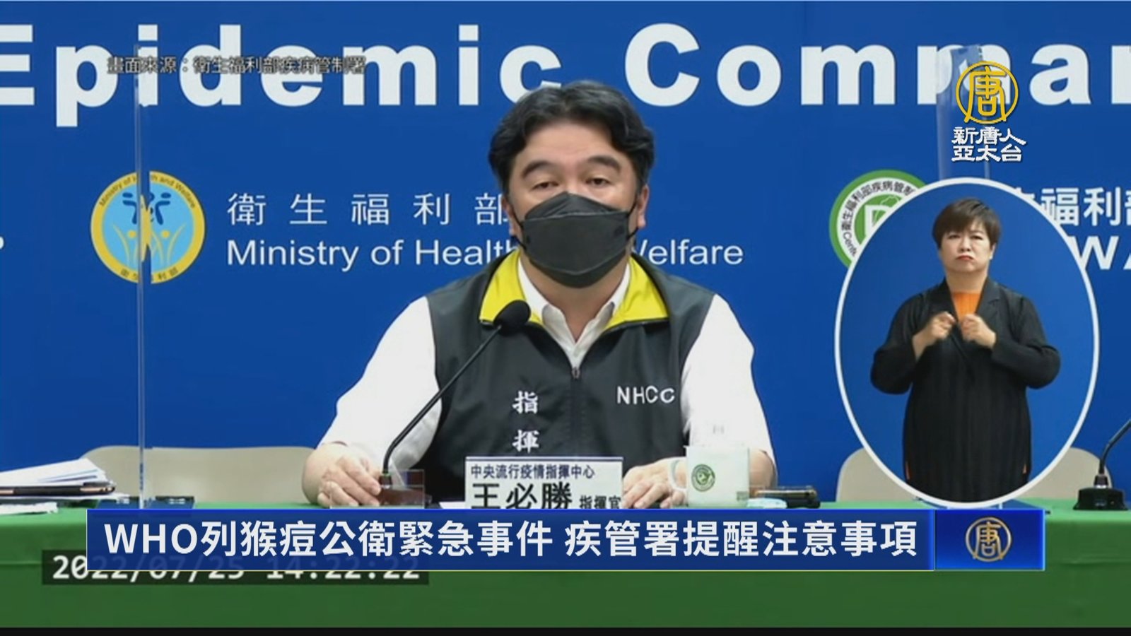 世界衛生組織(WHO)在23日宣布猴痘為全球公衛緊急事件,疾管署長周志浩今天(25)在疫情記者會上,說明3點預防注意事項,並針對傳播對象、旅遊高風險場域、返國入境等狀況進行說明。 //asset3.ntdtv.com.tw/public/uploads/assets/2022/07/25/2022-07-25-62de919e78740.mp4 猴痘|確診|WHO|全球公衛緊急事件|疾管署周志浩|王必勝|202207252022-07-25 21:40:32