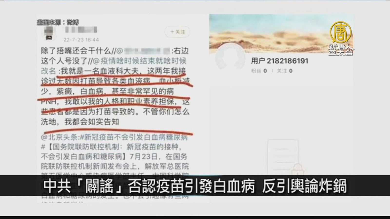 中共否認疫苗引發白血病引爆輿論 微博封號消聲|中國一分鐘