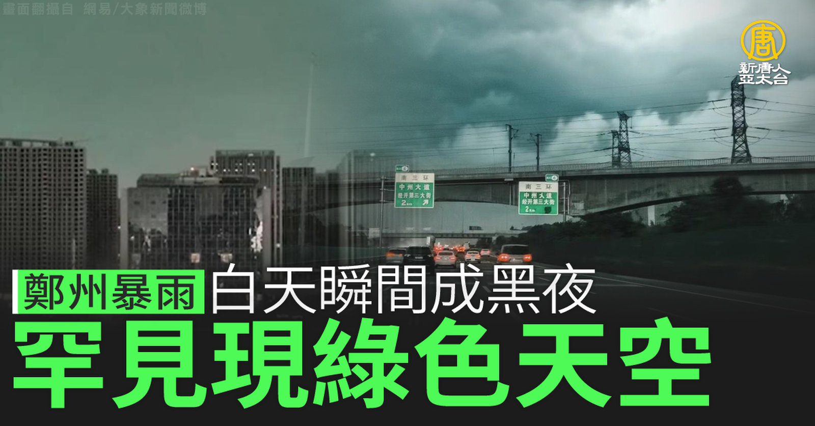 鄭州暴雨 白天瞬間成黑夜 罕見現綠色天空|中國一分鐘