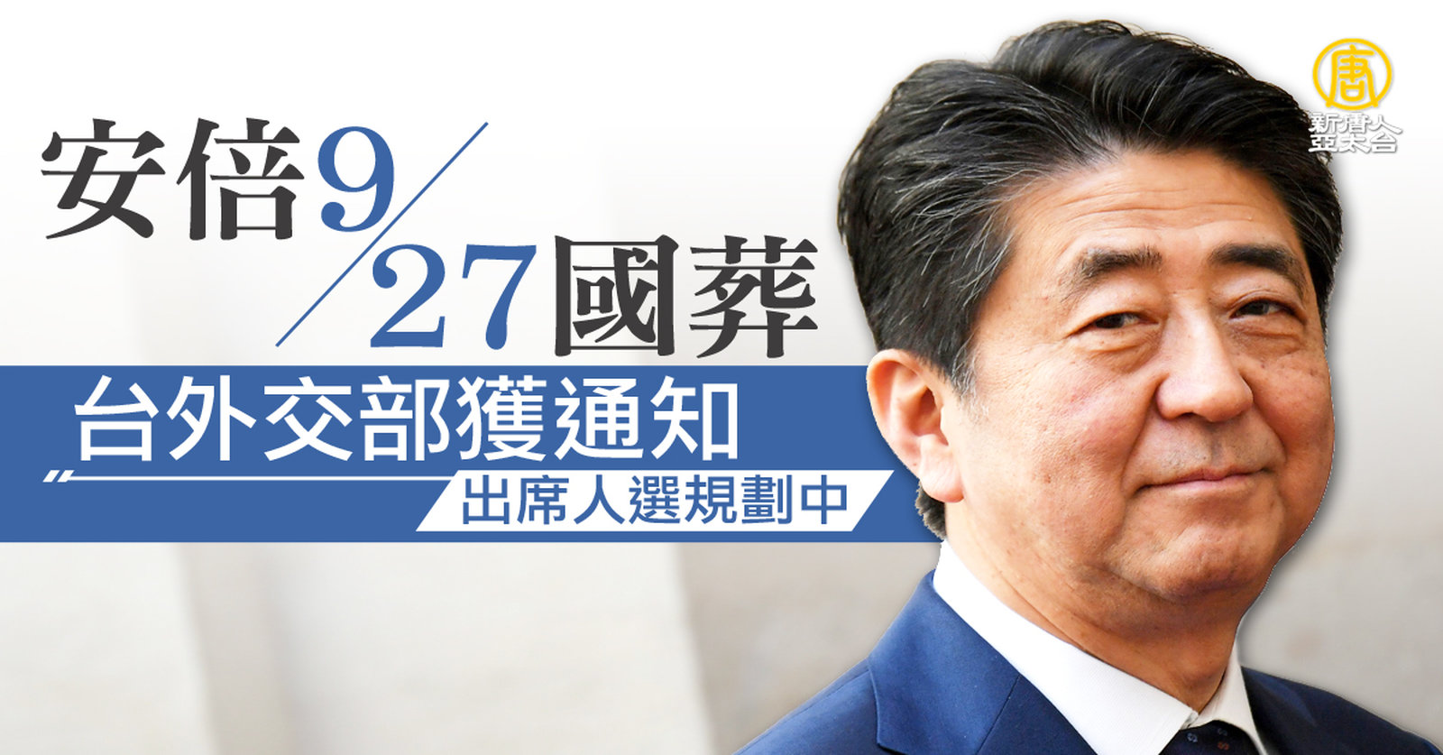 安倍9月27日國葬 台外交部獲通知.出席人選規劃中