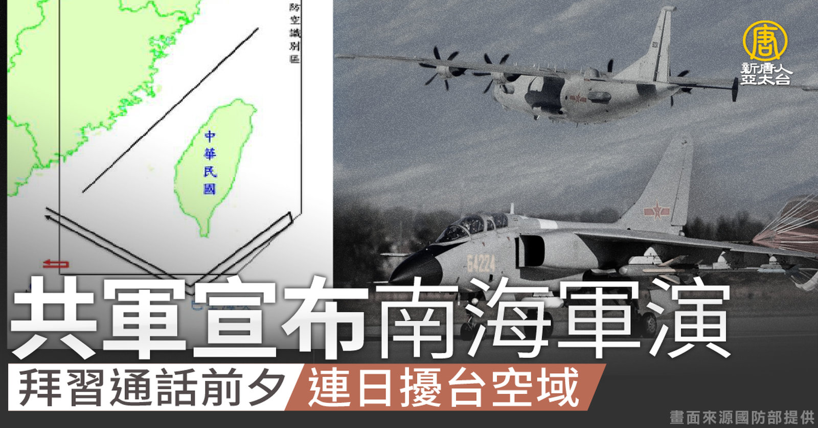 拜習通話前夕 共軍宣布南海軍演.連日擾台空域