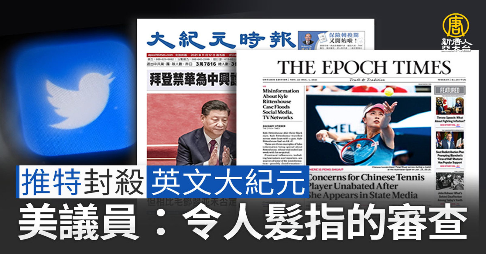 推特封殺英文大紀元 美議員:令人髮指的審查