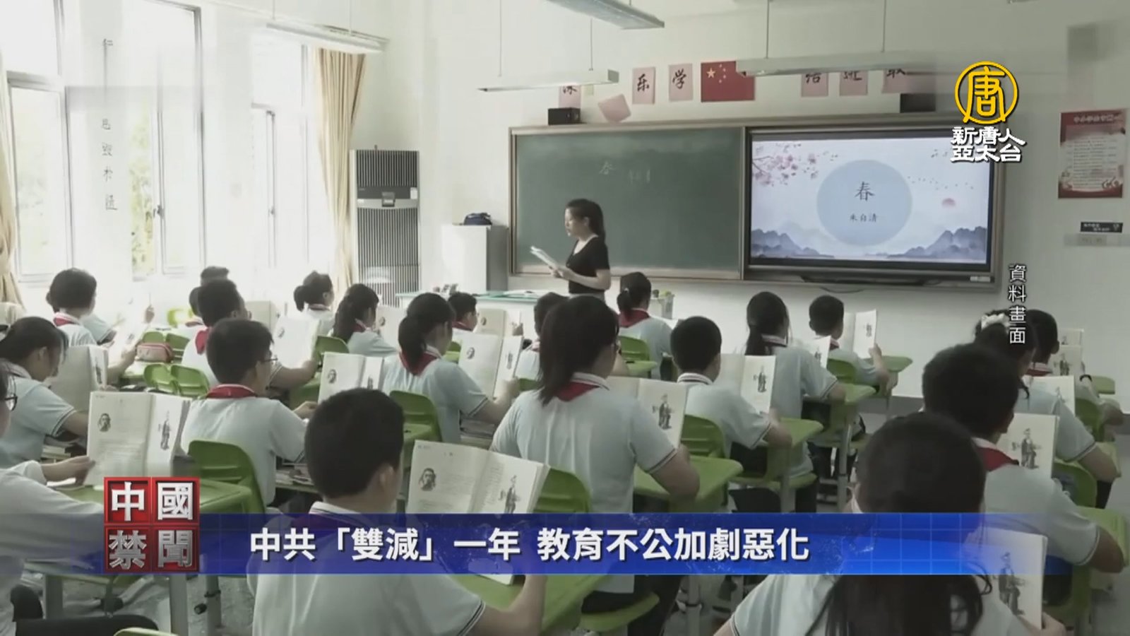 中共出臺的「雙減」政策一年來,催生出龐大的教培黑市,導致教培資源主要集中在中上階層的家庭。一份最新的調查報告指,「雙減」政策可能導致教育成本攀升,甚至惡化教育不公平現象。 //asset1.ntdtv.com.tw/public/uploads/assets/2022/07/30/2022-07-30-62e5307373037.mp4 中共|雙減政策|教培黑市|中國教育|家教|教育不公|202207302022-07-30 21:34:27
