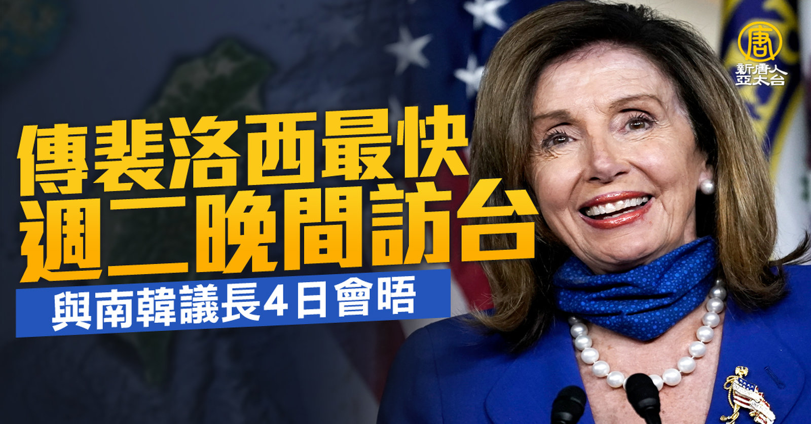 傳裴洛西最快週二晚間訪台 與南韓議長4日會晤